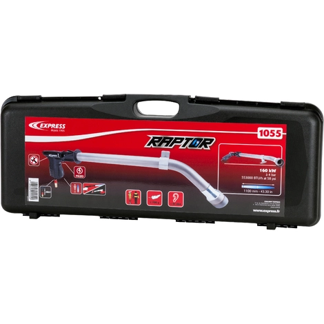 C’est aujourd’hui possible grâce à cette nouvelle référence 1055. Celle-ci combine le classique pistolet chalumeau Raptor tel qu’il est aujourd’hui utilisé par de très nombreux professionnels de l’étanchéité, avec sa lance courne, d’une puissance de 160 kW.