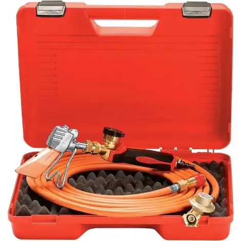 Outre les deux références déjà citées, cette valisette fer de couvreur est fournie avec un détendeur 2 bar Réf. 682 et son tuyau de 4,75 mètres Réf. 963/5 qui en font une offre particulièrement bien équilibrée pour qui recherche un outillage couverture d’un excellent rapport qualité prix.